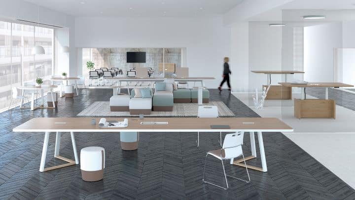 The Quorum collection can be tailored for any area whether it’s a conference room, meeting area or training room. Manufacturer with 1 1/2″ thick top and option for a knife edge, these tables provide a sophisticated look and will elevate your space. Available in 22 laminate finishes.