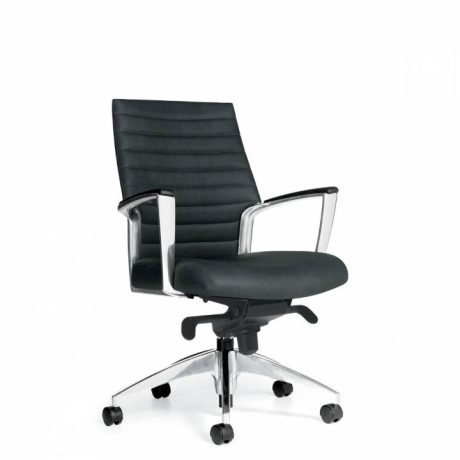 This award-winning series features classic styling with a finely detailed polished aluminum arm. The sling style back is upholstered with rolled and pleated details, and is available in an array of fabrics, vinyls or leathers. The Accord is perfect for your boardroom or private office.